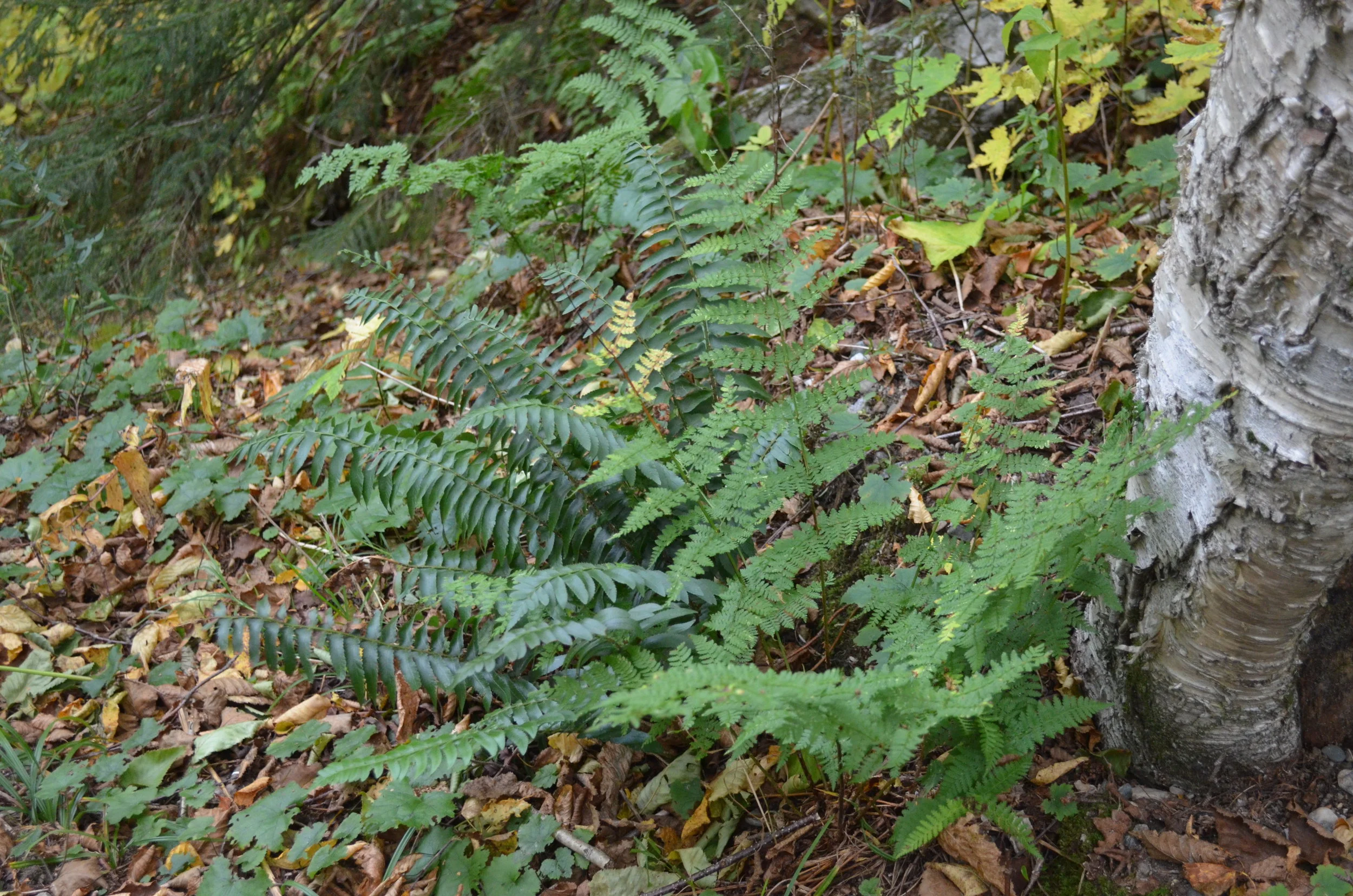 Beyond a small opening in the trees, at the edge of the road I see Christmas fern mixed with wood fern and the orchid, helleborine. On the opposite side of the road, aven’s seed pods rise above its green leaves. These seed pods are designed to clasp onto the fur or clothes of a passer-by, to be unwittingly planted at a different location, preferably for the plant, in conditions that allows for the seed’s successful germination.